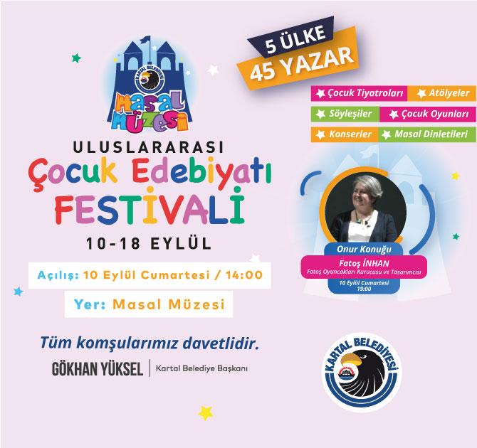 Aileleri ve eğitim kurumlarını da içine alan, bilimin ışığında sağlıklı iletişim kurmanın çocuklar üzerindeki etkilerine inanan “Kartal Belediyesi Masal Müzesi Uluslararası Çocuk Edebiyatı Festivali”; söyleşiler, eğlenceli tarih sohbetleri, konserler, çizgi film gösterimleri, tiyatrolar, kukla tiyatroları, geleneksel çocuk oyunları, gölge oyunları, masal anlatımları, çocuk yazarlarından kitap imzaları ve drama atölyelerini kapsayan geniş bir yelpazeyi içeriyor.
