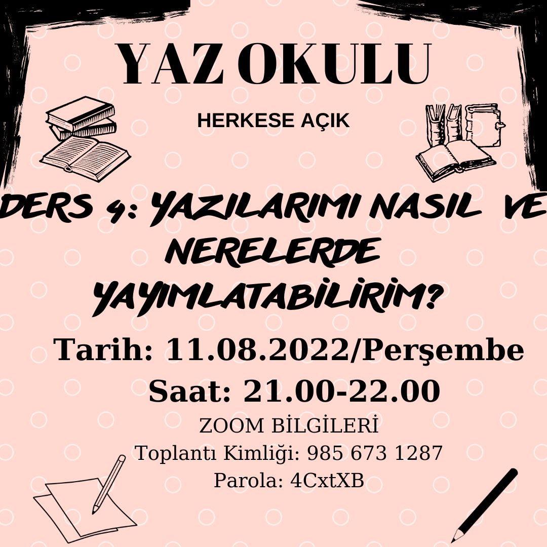 Dr. Korhan Altunyay’ın yönetiminde yapılan yaz okulu 11.08.2022 Perşembe günü sona eriyor. Dersin konusu “Yazılarımı nasıl ve nerelerde yayımlatabilirim?”